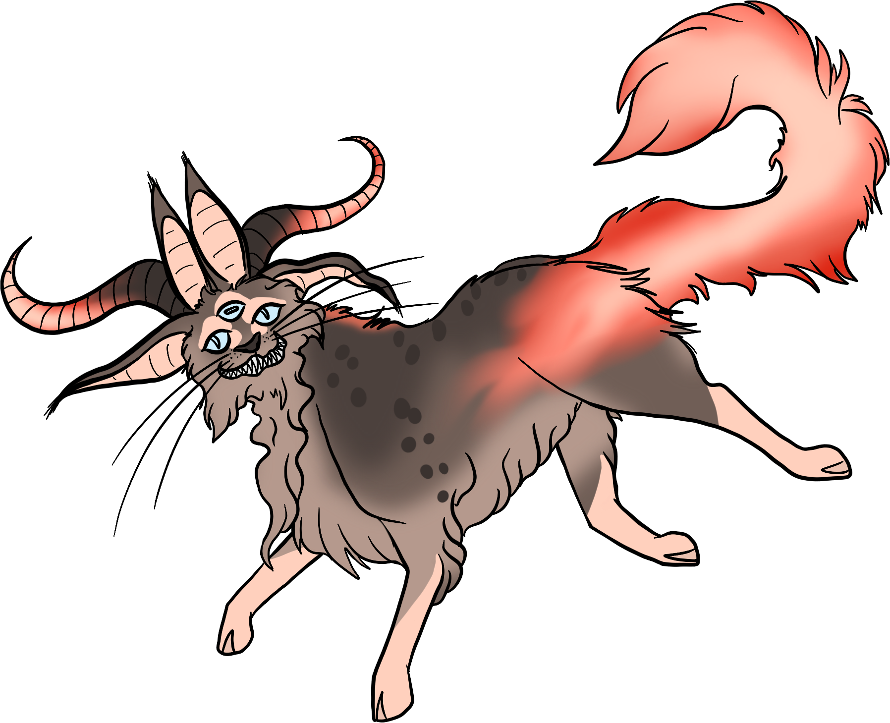 Smokey Champagne with frill, hued points, inferno, marble, pangare, sable, unnatural segment, shimmer, spotting, strand