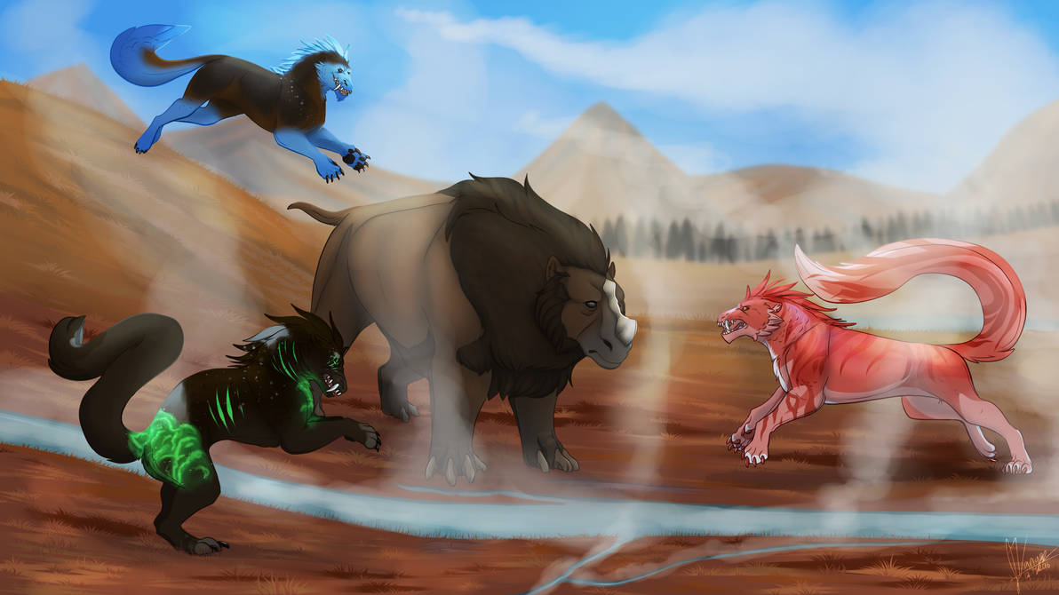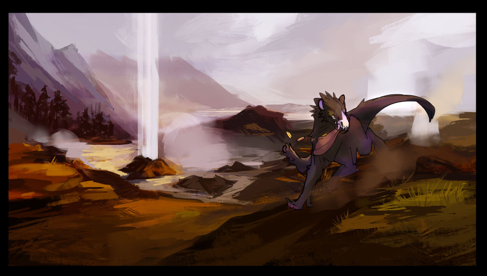 Lachlan is mischievous and a natural born trickster, loving to mess with travelers just for good fun. He enjoys painting himself up but isn't afraid of getting dirty and is usually always seen with mud on either his hands or face. He's very protective over his territory, though he's usually bad at showing it. Enjoys chasing things for fun or playing with something until it gets boring, which is often quite fast for him. He also has no problem throwing a temper tantrum when things don't go his way.