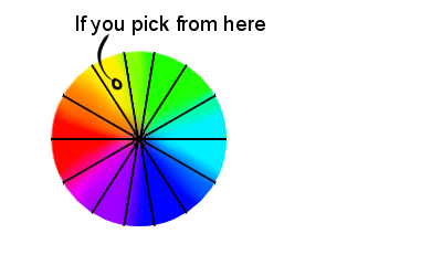 (Please note that the color wheel is sloppily made and is only meant to explain, please divide your own color wheel into 8 roughly even sections. Severity of hue-shifts will be looked at on a case-by-case basis)