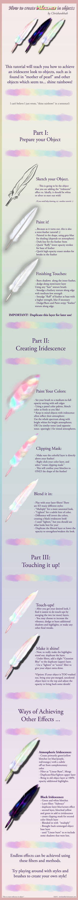 Here is a useful tutorial on how to get the iridescent effect: