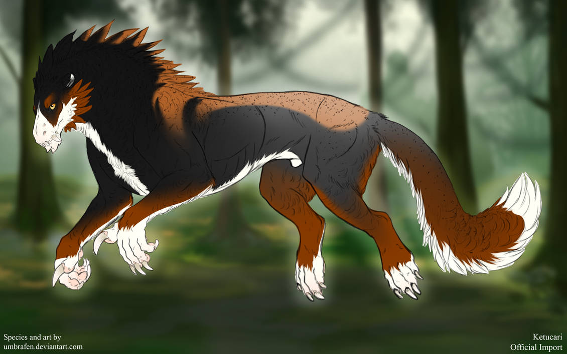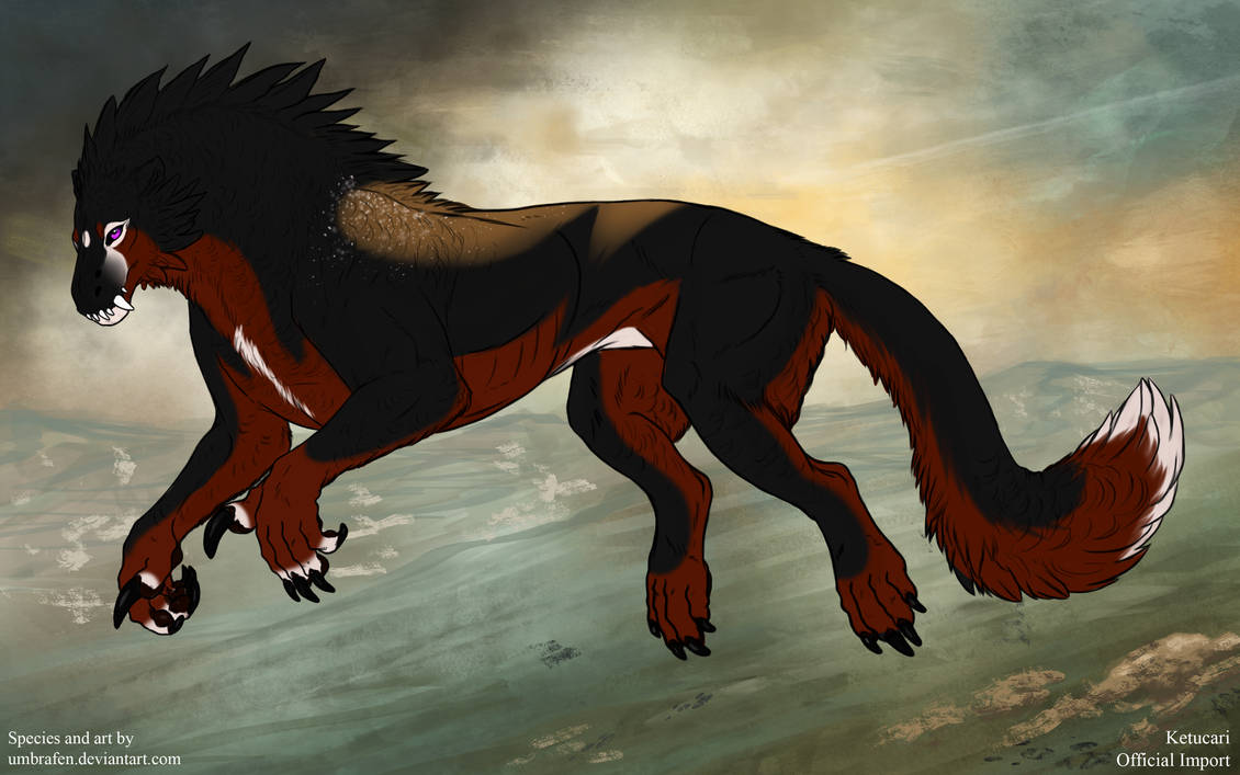 Shell can be hard or have a slightly blended edge, but must not be so blended that it resembles sable. It may have slightly jagged edges, but must not be too irregular or tattoo-like. Jagged edges will always sweep toward the ketucari's hindquarters, while those on the shoulders and neck will follow the curve of the shoulders and neck.