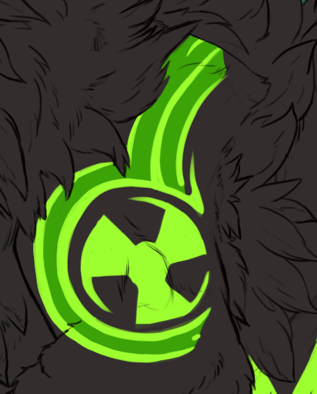 (Please note: the triangular divits in the central nuclear symbol would have been allowed but the artist preferred the shape without them)