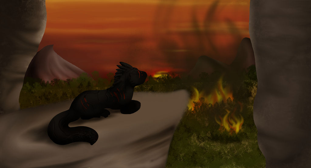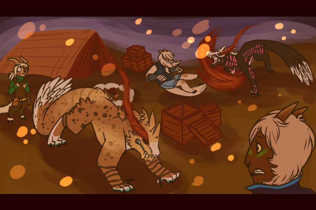 • Depict your ketucari choosing to decline Tanqorah's request for assistance. The villagers were probably barring their path to the riches of the highland, anyways. You may show them watching the village burn from afar.Fire Within