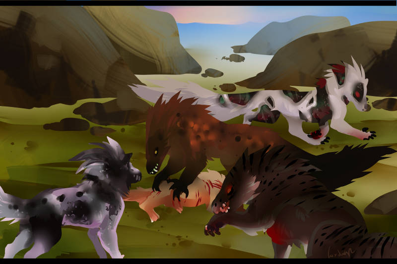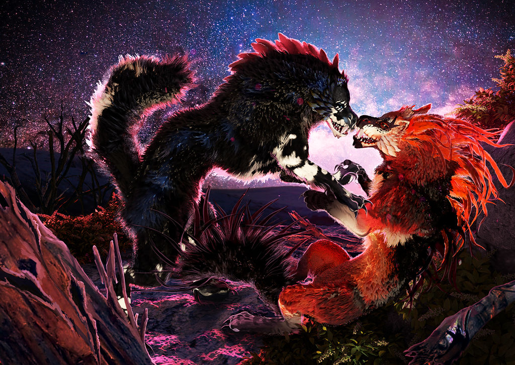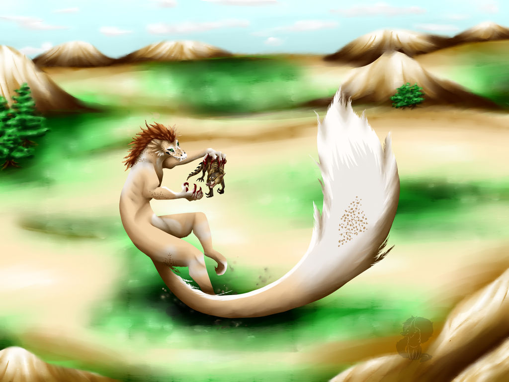 Depict your ketucari attacking a living creature with their claws. It can be an animal from the zone, or any other random critter.