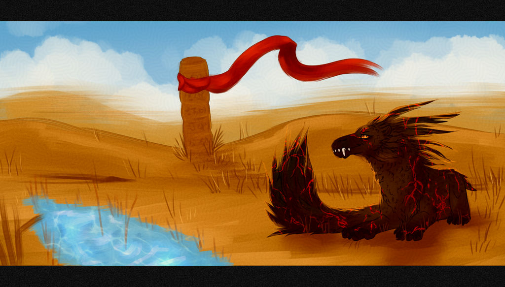 "A day ago, a band of raiders had the gall to invade my lair while I was away. They took an artifact of mine-- something priceless to me. I would pursue them myself and take back what's mine, but they had a good head start and I know my limits. The shifting sands make fast travel for one as big as myself nearly impossible. Find them and retrieve my treasure and I'll give you a just reward."