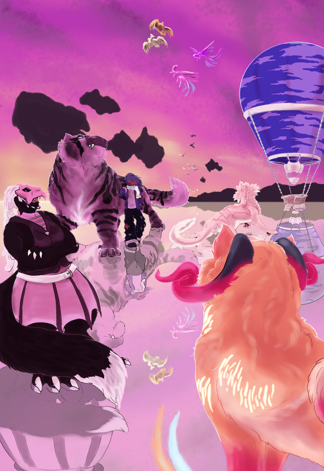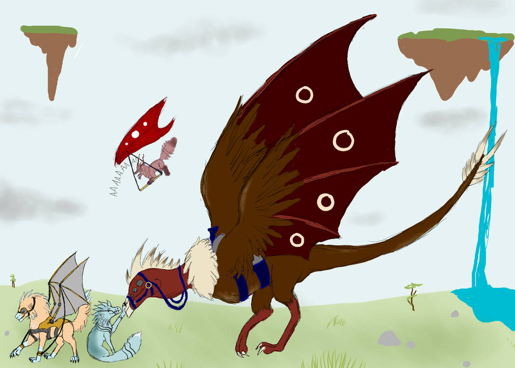 Humans, heldyr and ketucari alike live among these lands, most villages being below the islands, though some dot the floating lands above. Many inhabitants have made a fortune by offering hot air balloon and caped wyvern rides to the islands, as those without Talik and Greheli may struggle to find a way to the islands above.