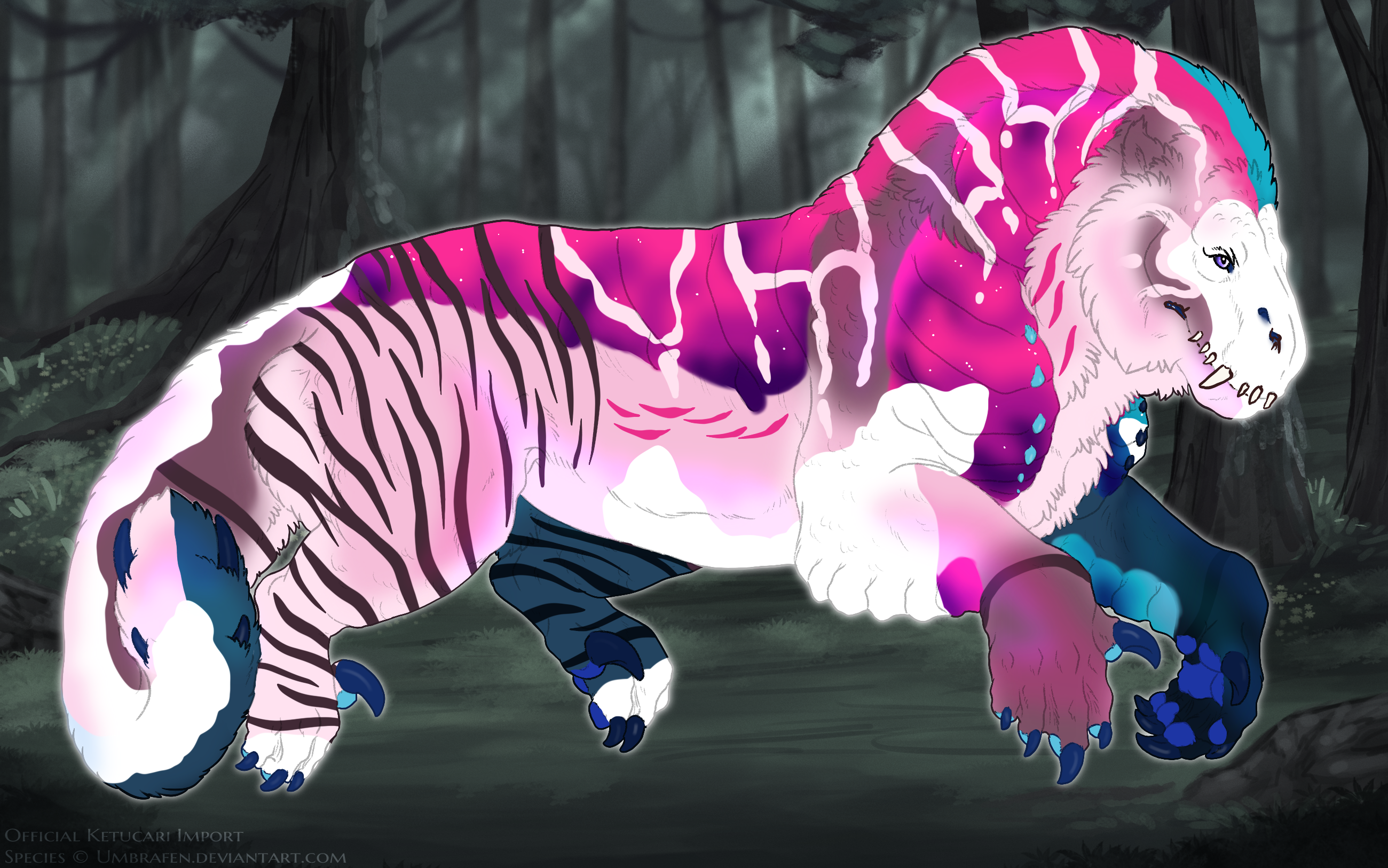 Chimeric (Blush and Maltese Stone) with display, dusky points, frill, lacing, pangare, piebald, sable, shimmer, strand, striping, vapor, vent
