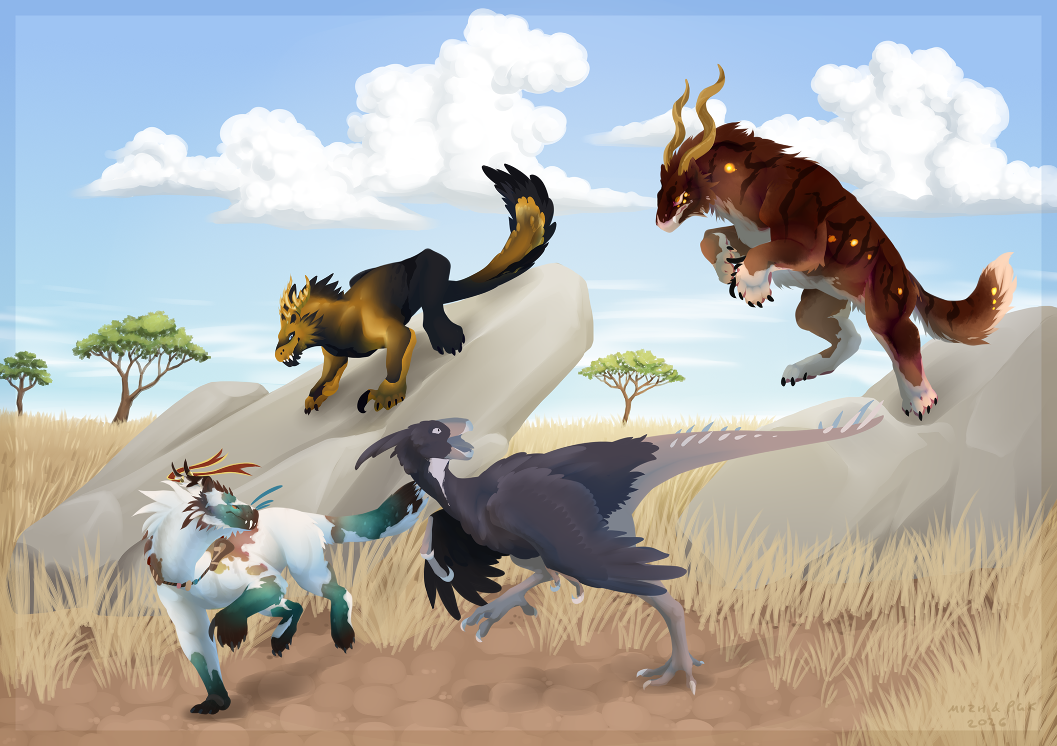 After a tense first encounter, Iorem and Mhenkaye are joined for a hunt by Nebula, who's familiar with the traveling patterns of beasts and guides them to a target.